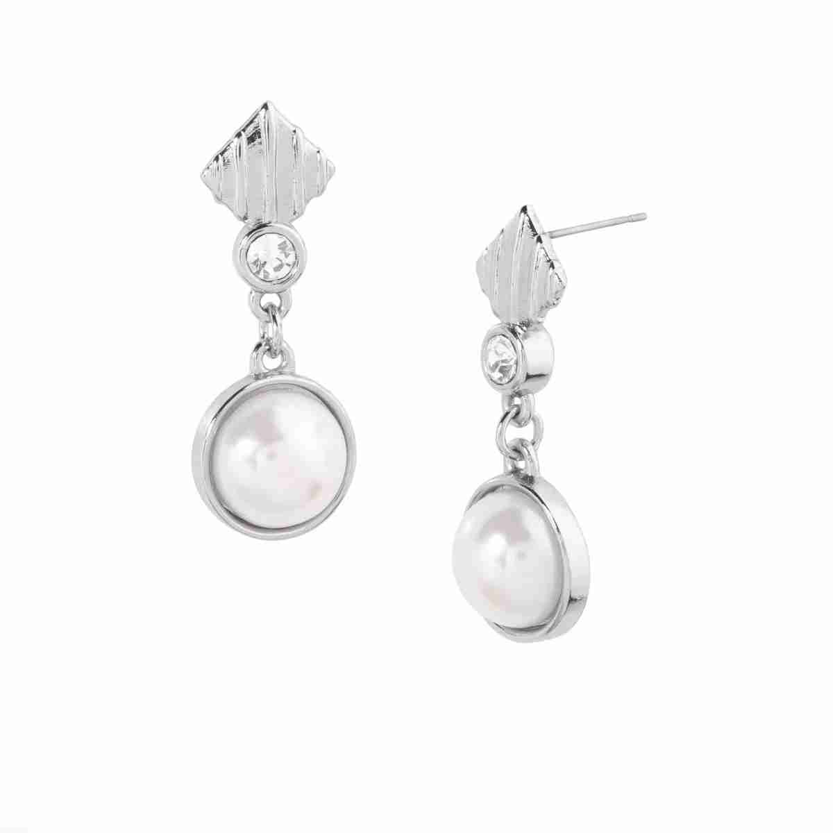 Elegante Arete Colgante de Baño Platino con Perla FantasíaElegante Arete Colgante de Baño Platino con Perla Fantasía